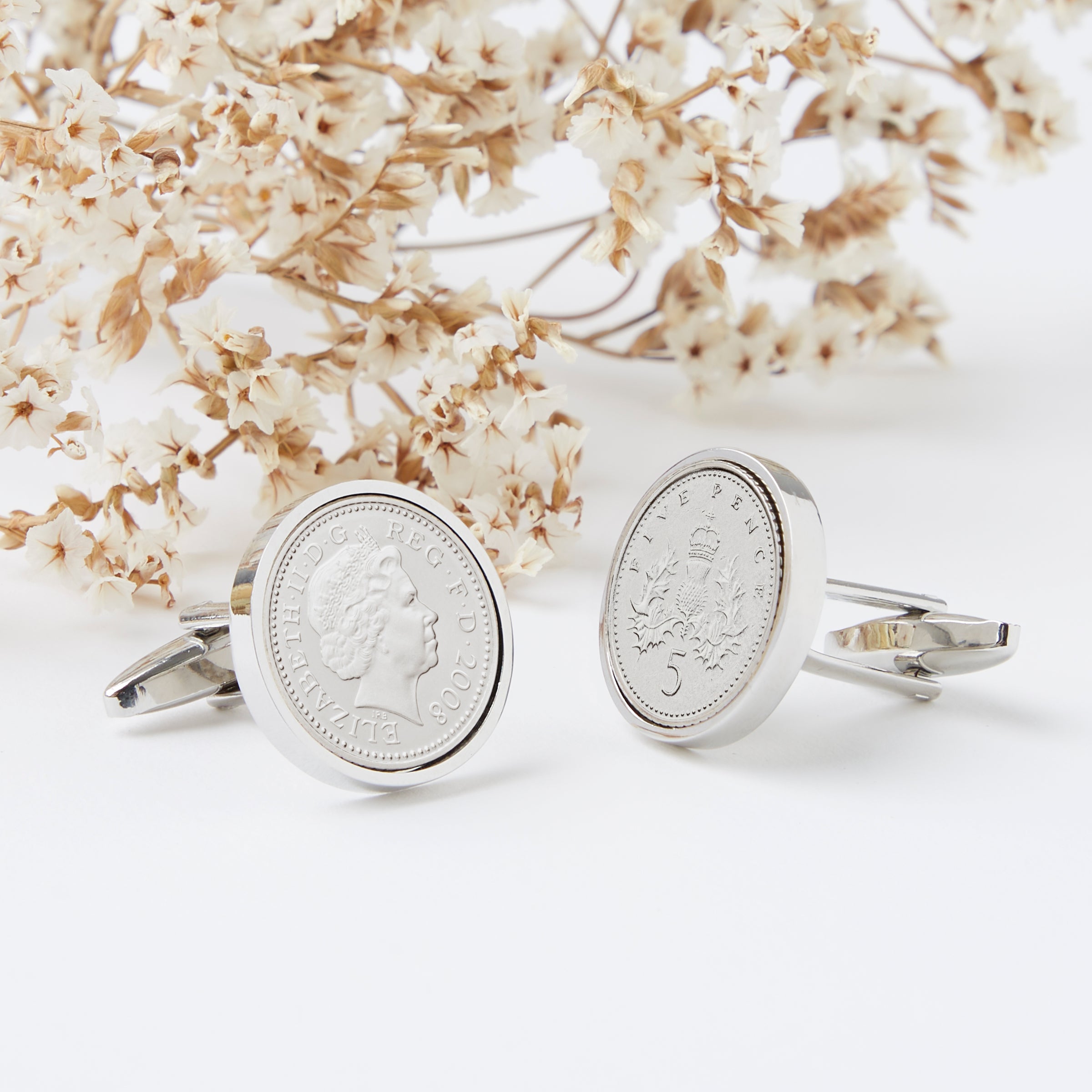 A classic pair of 2008 five pence personalised cufflinks made from genuine five pence piece coins, the perfect 18th birthday gift for him