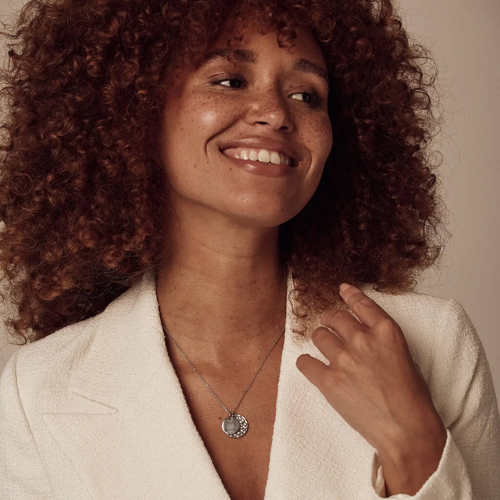 These double discs will be your new obsession, and personalised with the handwriting of their loved one it is the perfect sentimental gift.A beautiful collaboration with our friends at Treatfully, this sterling silver necklace is a tactile delight, with a textured back disc overlaid by a smooth silver - personalised with the real handwriting of their loved one! The perfect git for mother, partner, wife or girlfriend.