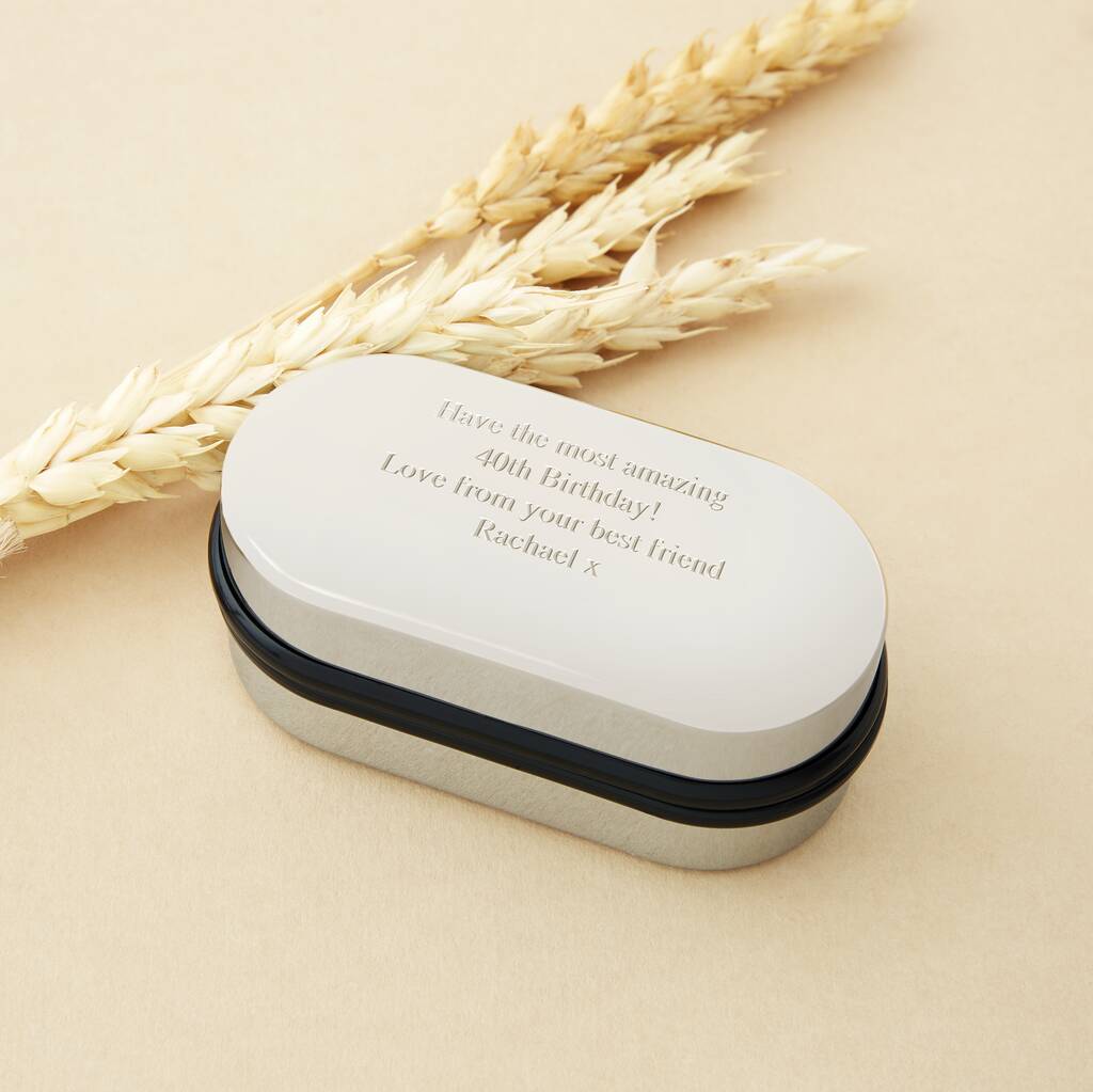 Why not add a special cufflink box? Our chrome cufflink box add-on will keep your cufflinks safe and sound in style, and with the option to engrave a special message on the top of the box it will make the perfect finishing touch for a special gift. Your cufflinks will be sent in an Ellie Ellie cufflink box, with the chrome box packed separately to ensure they both arrive safe and sound in the post.