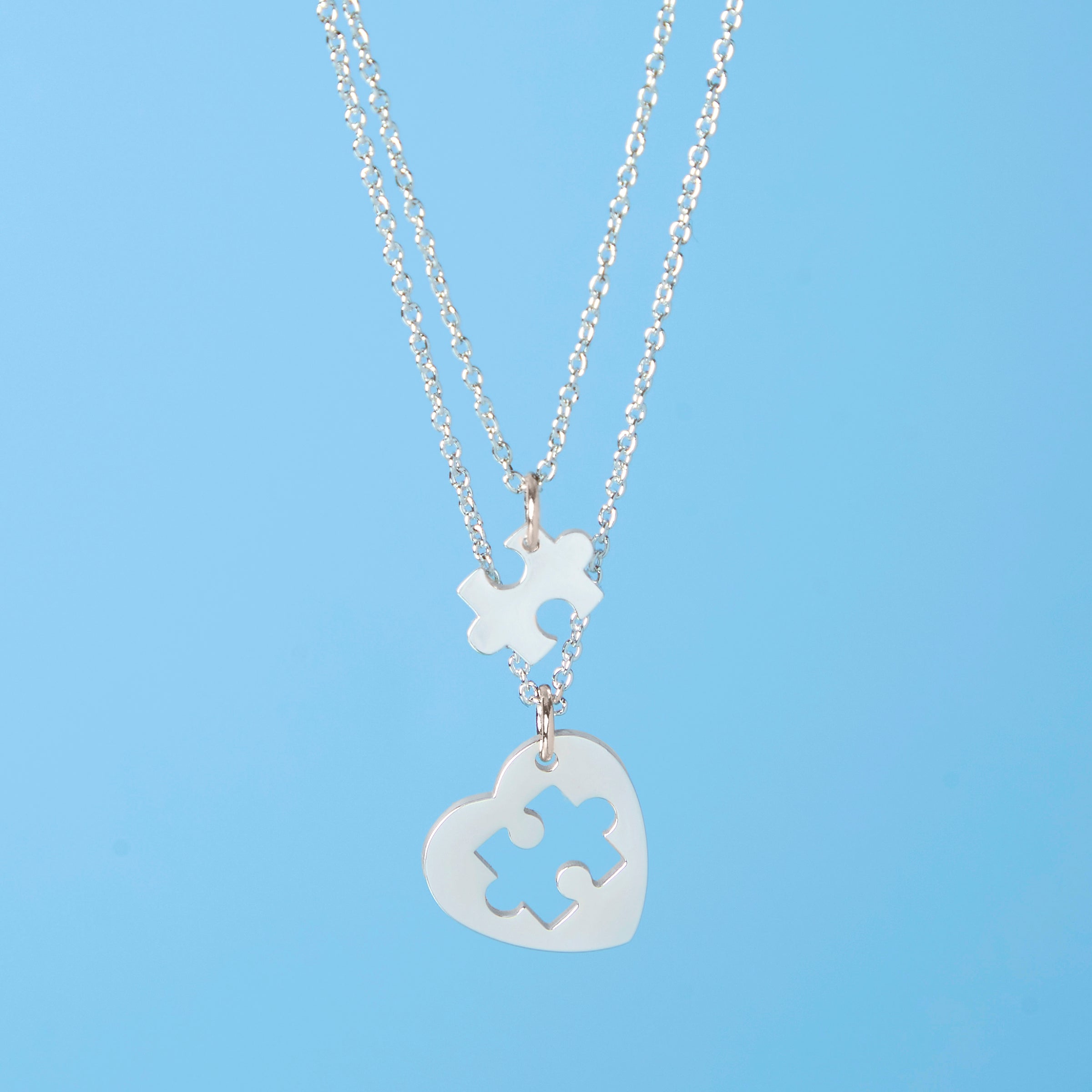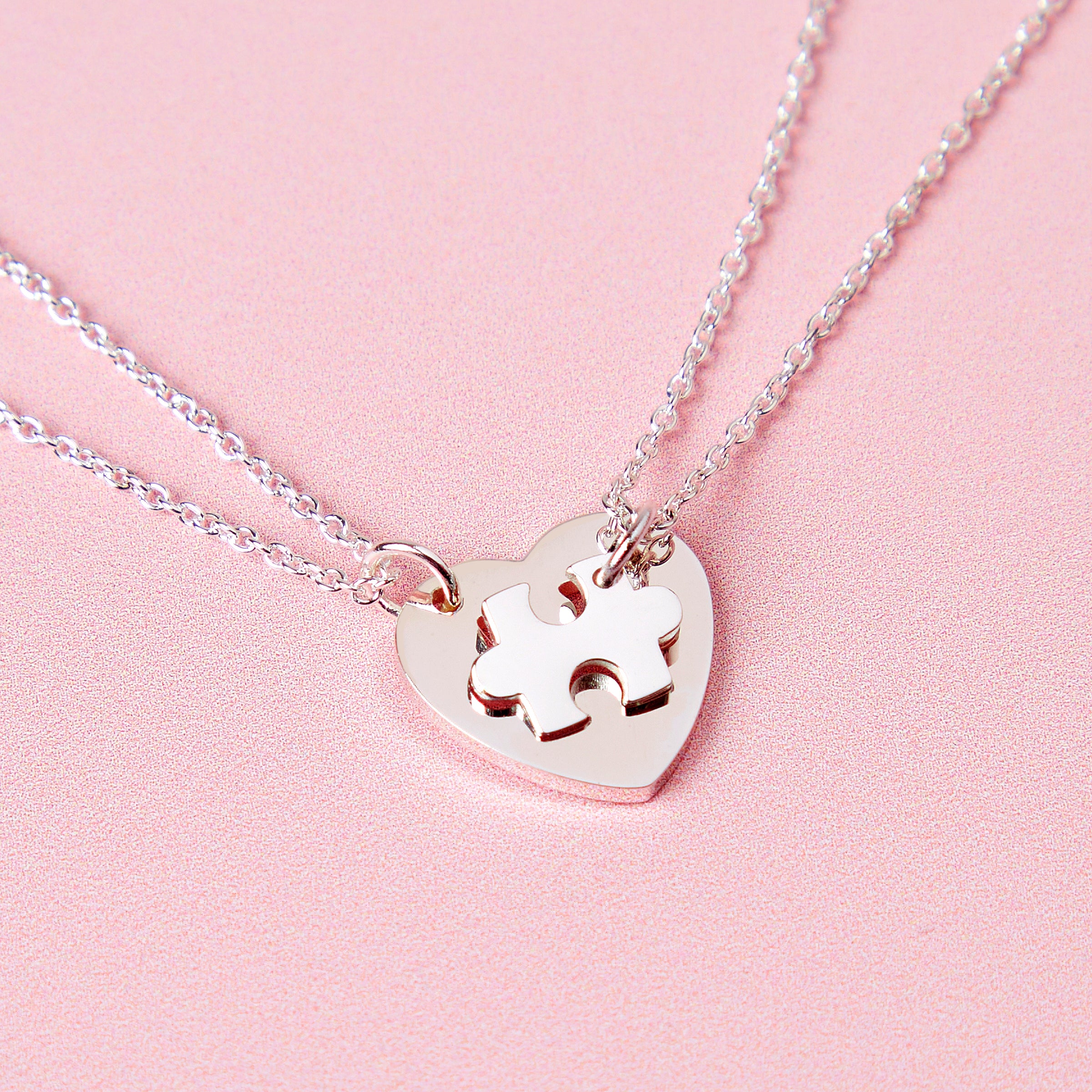 Our beautiful heart jigsaw necklace set is a wonderful gift to celebrate the unique bond between a mother and daughter.